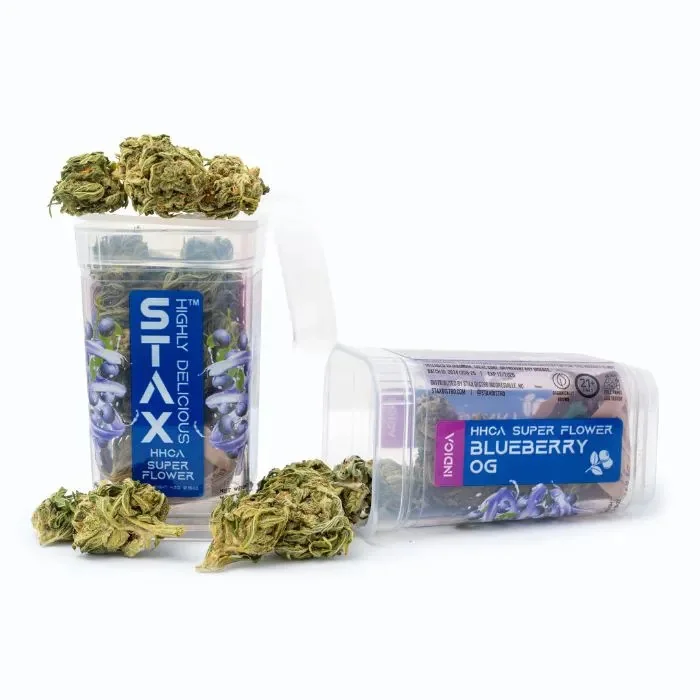 Elevate your smoke with Stax HHCA Super Flower, now available in 4.2G jars and sold in a 12-count display. Crafted for maximum flavor, potency, and smoothness, this premium HHCA flower is ideal for those who expect top-tier hemp products. Each strain is carefully cultivated to deliver a clean, rich smoke with powerful effects. Available Flavors: Blueberry OG (Indica): A relaxing blend of earthy OG notes and sweet blueberry for deep body calm. Forbidden Fruit (Hybrid): Tropical, fruity aroma with balanced effects perfect for day or night sessions. Lemonade (Sativa): Bright citrus flavor with energizing effects to keep you uplifted and focused. Whether you want to chill, energize, or find balance, Stax HHCA Super Flower 4.2G delivers terpene-rich flavor and next-level potency in every jar.