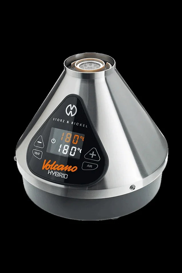 An outstanding tabletop vaporizer for dry herbs offering incredible vaporization power right at your fingertips. The Volcano Hybrid from Storz & Bickel is one of the most powerful table-top vaporizers on the market, boasting a digital LED screen that precisely and immediately keeps track of the desired temperature and the actual temperature of the machine. The Volcano Hybrid vaporizes your dry herbs via heat by intensifying the active ingredients and circulating them in attachable balloons to be inhaled. A bright LED display shows a temperature range of 104 °F to 446 °F degree adjustment is controlled via plus and minus buttons. The unit's automatic shutoff timer turns the vaporizer off after 30 minutes of inactivity, preserving the heating element and conserving energy. Plus, with this high-end vape, you can easily control your sessions via the Storz and Bickel app for Andriod and iOS. The Volcano Hybrid is for the smoker who is looking for luxury, ease of use, and precision all rolled into one fine little machine. The vaporizer is available in two finishes: Onyx or Chrome.