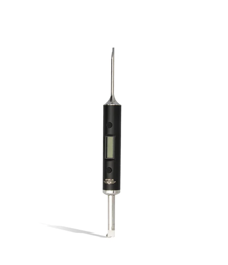 Stratospheric Expectations Achieved Getting accurate temperatures for your dabs is easier than ever with the precision readings offered by the Stratus Temperature Meter. Check this one out if you are looking to get heat measurements from your rig without having to rely on imprecise methodology or often wrong infrared scanning devices. With a bright LCD display to easily get your information and built in dab tool to make this an all-in-one essential for all of your concentrate needs. Never hit your dabs at the wrong temperature again by picking up a Stratus Temperature Meter and beginning to enjoy the pleasure of properly heated concentrates. Stratus manufactures a diverse array of products for you to enjoy your concentrates or dry herbs with complete confidence that you're in good hands. Stratus ensures that whether you are using one of their e-nails or their pipes, that you will be treated to a premium experience every single time you use them. What’s Included: (1) Stratus Temperature Meter (1) Protective Case