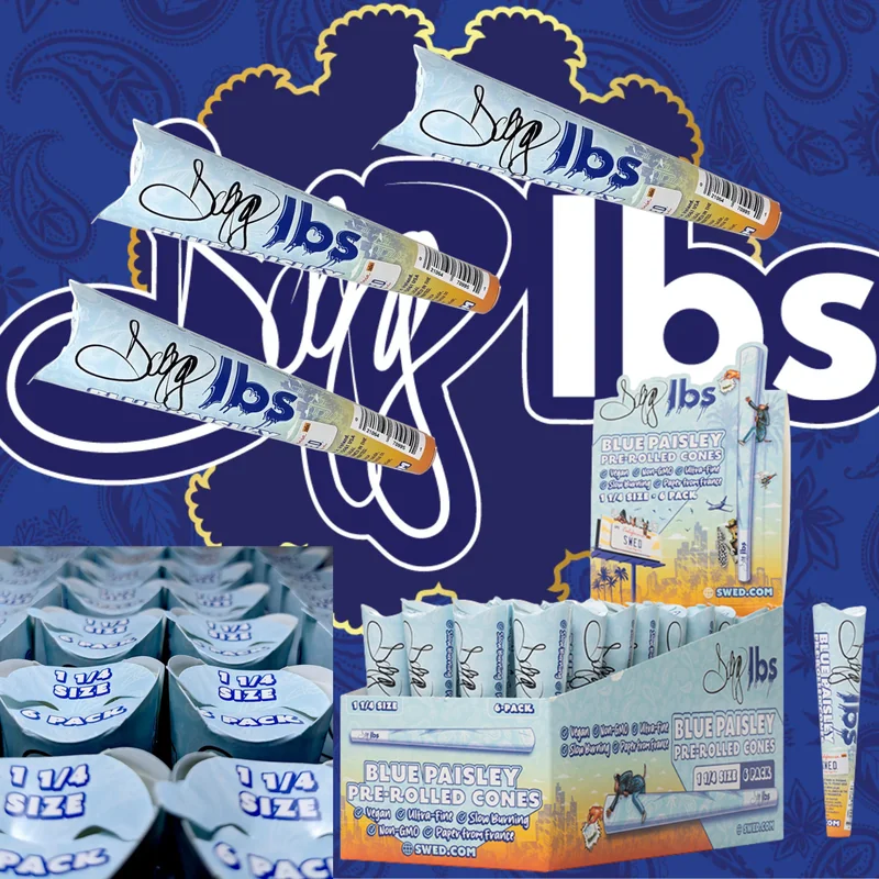 SWED DOGG LBS BLUE PAISLEY PRE-ROLLED CONES DISPLAY OF 32 SWED DOGG LBS Blue Paisley Pre-Rolled Cones blend style, convenience, and quality into one standout product. Each cone features the iconic Blue Paisley design , delivering a bold visual flair while maintaining a smooth, slow-burning experience. Pre-rolled for user convenience, these cones are crafted with premium paper that preserves flavor and ensures even combustion. The display of 32 cones is perfect for retail environments looking to