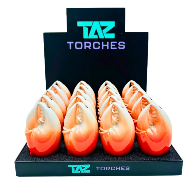 TAZ TORCH STONECRAB LEG DESIGN TORCH DISPLAY OF 20 (TT-72) Stand out with the TAZ Torch Stonecrab Leg Design Torch – Display of 20 (TT-72) . Designed with a unique stonecrab leg-inspired shape , these novelty torches combine bold, ocean-themed styling with reliable flame performance. Built to catch attention, the crab-leg design makes these torches both collectible and highly retail-friendly. Each lighter delivers a powerful, windproof flame , making it perfect for cigars, bowls, bangers, and co