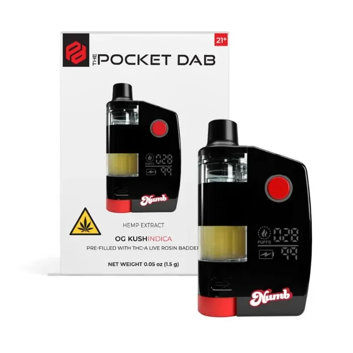 Introducing the Pocket Dab Live Rosin THC-A Disposable Vape 1.5G, a game-changing way to enjoy real dabs anytime, anywhere. Forget rigs, torches, and messy setups—this pocket-sized device delivers a true dab experience in seconds. Simply twist to load, click to fire, and enjoy smooth, potent clouds. Crafted with premium solventless live rosin, the Pocket Dab provides unmatched flavor, potency, and purity. It’s the first device designed for true dose control, giving you clean, consistent hits without waste or guesswork. Perfect for discreet sessions on the go, it’s all the power of a dab rig in the palm of your hand. Each 5 pack features 1.5G disposables available in three iconic strains: Blue Dream (Hybrid): A balanced blend of berry sweetness and cerebral uplift. OG Kush (Indica): Earthy, piney, and deeply relaxing for body and mind. Sour Diesel (Sativa): Pungent and energizing with fast-acting cerebral effects. With The Pocket Dab, you get pure live rosin convenience and precision anywhere you go.