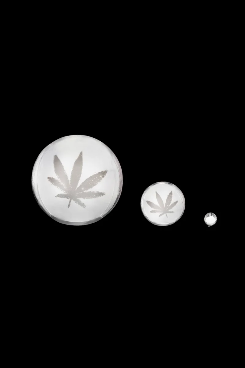 This Carved Leaf Terp Slurper Set includes a stunning 3D leaf design carved into the quartz. It's equipped with a 25mm marble cap, 12mm valve cap, and 6mm quartz pearl, providing an optimal vaporization experience. Enjoy even vaporization and full flavorful hits with this unique terp slurper set. Carved 3D leaf design Quartz 25mm marble cap 12mm valve cap 6mm quartz pearl
