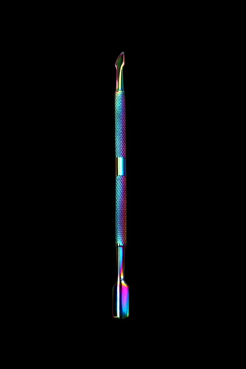 The Stainless Steel Scoop Dabber Tool excels in handling concentrates with soft, sugary, and crystal textures. It offers optimal performance for working with these types of concentrates. Additionally, the included small pick is perfect for breaking down larger pieces into the desired size, which can then be easily picked up using the scoop. Dual tool Scoop Pick