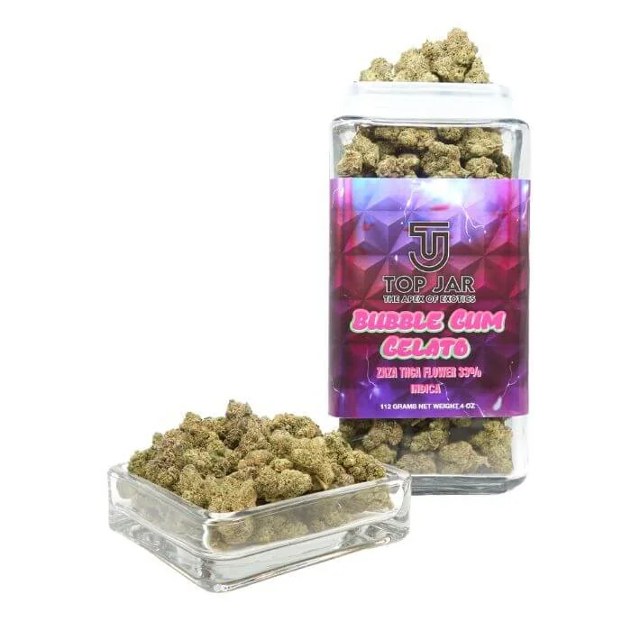 Elevate your experience with Top Jar’s 112g THC-A infused flower collection. Curated for potency and quality, each strain is infused with THC-A to offer enhanced effects and a premium experience. Perfect for enthusiasts who seek variety and quality, this collection features eight unique strains for every mood and preference. Flavor Descriptions: Black Diamond (Indica): Deep, earthy notes with a relaxing body high, ideal for unwinding after a long day. Blockberry (Sativa): Sweet and berry-like with energizing effects that boost focus and creativity. Blue Slushee (Hybrid): Balanced, refreshing, with hints of berry; offers relaxation with a gentle focus. Blueberry Skittles (Sativa): Fruity and vibrant, this strain provides an uplifting, energizing experience. Bubble Gum Gelato (Indica): Creamy, sweet notes with a calm, full-body relaxation, perfect for nighttime. LA Push Pop (Hybrid): Smooth, slightly citrusy flavor with balanced effects, ideal for any time of day. Lime Skunk (Sativa): Zesty lime and skunk notes with a stimulating, euphoric buzz, perfect for daytime use. Purple Cream (Indica): Rich, creamy flavor with deep, calming effects, great for winding down. Product Details: THC-A Infused: Delivers potency and a premium high Size: 112g per jar Lab-Tested: Ensured purity and quality Top Jar’s THC-A infused flower offers an exceptional and varied experience for those who enjoy high-quality, potent strains. Enjoy the ultimate selection for relaxation, focus, or creative energy.