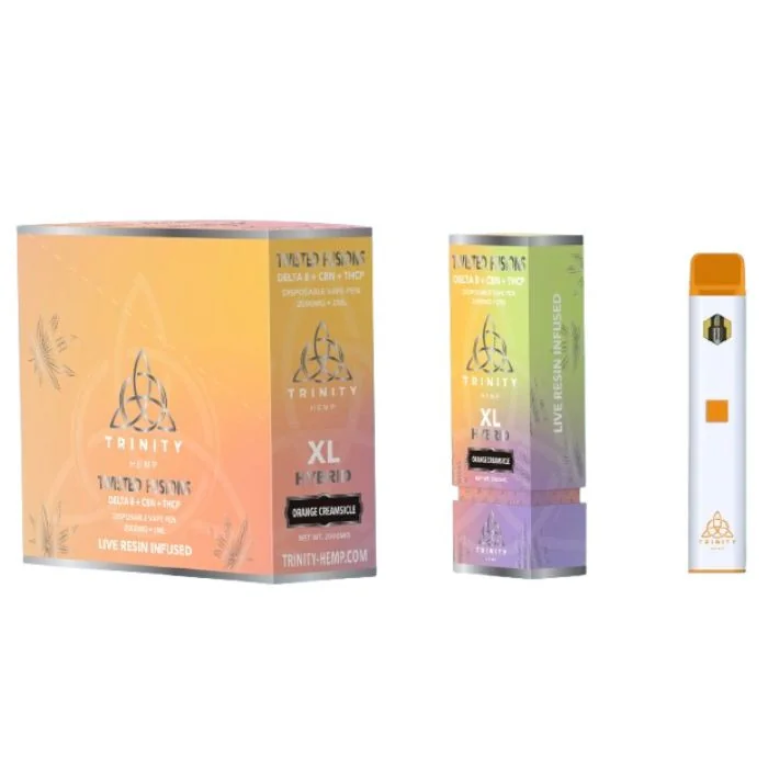 Unleash the ultimate vaping experience with Trinity Hemp’s Twisted Fusion 2G Disposable Vape a premium, versatile device designed for enthusiasts who crave variety, potency, and flavor. Offering three distinct blends centered around rare cannabinoids—THC-P, THC-H, and THC-JD—this device provides a gateway to exploring the unique effects and profiles of each compound. Expertly blended with Delta-8, CBD, and naturally derived live resin terpenes, Twisted Fusion delivers a smooth, flavorful, and impactful vaping experience tailored to every preference. Designed for convenience, the Twisted Fusion device features a rechargeable 2-gram capacity capable of delivering approximately 600 puffs. Its USB-C compatibility (charger not included) ensures you can recharge as often as needed, letting you enjoy every last drop without compromise. Trinity Hemp Twisted Fusion XL 2G Features: Versatile Blends: Includes three unique cannabinoid combinations: THC-P, THC-H, and THC-JD blended with Delta-8 and CBD for varied effects and profiles. Live Resin Terpenes: Infused with naturally derived live resin terpenes for enhanced flavor and smooth vaping. Generous Capacity: Offers a 2-gram reservoir, providing approximately 600 puffs per device. Rechargeable Design: USB-C compatibility (charger not included) ensures every drop can be vaped without waste. Premium Formulation: Expertly crafted for potency, flavor, and a customized experience. Portable Convenience: Disposable and user-friendly for on-the-go vaping enthusiasts. Trinity Hemp Twisted Fusion Flavors/Strain: THC-P Blends: Raspberry Kush Sundae Driver WiFi God’s Gift Lemonade Kush Orange Creamsicle THC-H Blends: Hawaiian Haze Ice Cream Cookies Blueberry Haze Cranberry Kush Fire OG Bubba Kush THC-JD Blends: Agent Orange 9 Pound Hammer Biscotti Ekto Cooler 24K Gold Punch Blackberry Kush Trinity Hemp Twisted Fusion Wholesale: The Trinity Hemp Twisted Fusion XL 2G Wholesale offers a unique and