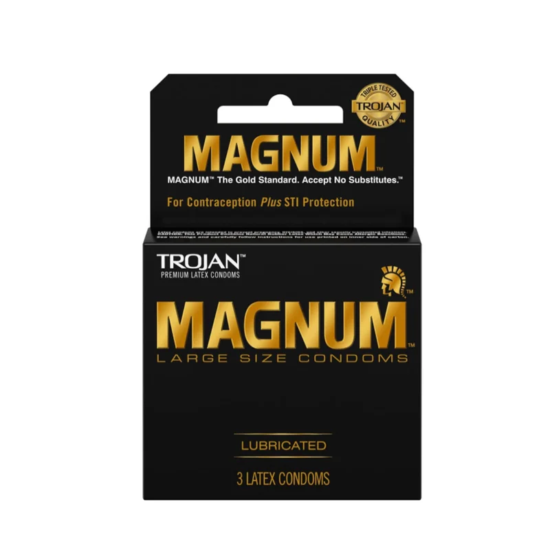 TROJAN MAGNUM LUBRICATED LARGE SIZE 3CT LATEX CONDOMS PACK OF 6 Experience the comfort and reliability of TROJAN MAGNUM LUBRICATED LARGE SIZE 3CT LATEX CONDOMS PACK OF 6. Specifically designed for those who need a larger fit, these condoms offer the trusted protection of Trojan with added comfort. Made from premium latex, these condoms are pre-lubricated to enhance pleasure and ensure a smooth experience. Each pack contains 3 large-size condoms, and this set includes 6 packs, making it perfect f