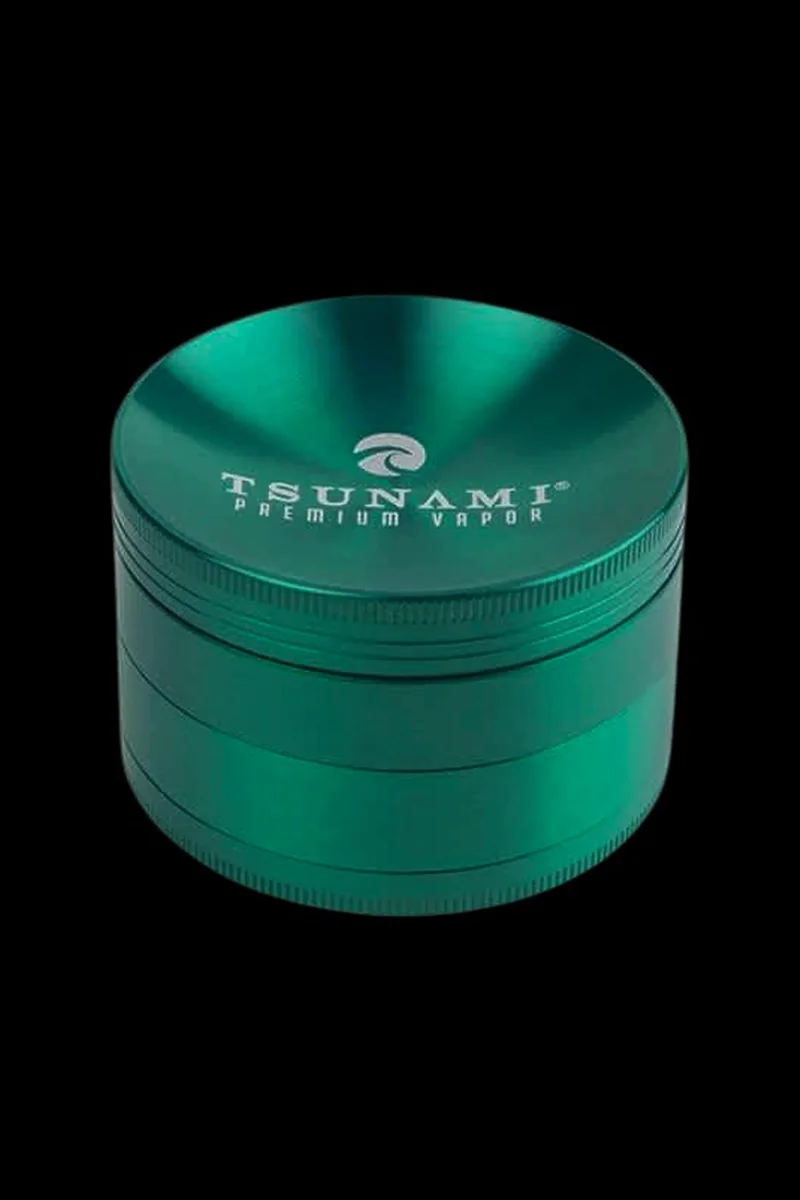A reliable grinder is an essential accessory for any smoker, whether they light up once in a while or multiple times a day. Tsunami makes high-quality devices that are built to last. A four-piece grinder is the best option because it grinds, catches the product on a screen below, and then the excess kief falls off and collects in the base chamber. Each Tsunami grinder includes a scraper tool in the bottom layer for easy pollen handling. The sunken shape style of this grinder means that it has a non-traditional lid shape. This grinder’s lid curves inward towards the center. This makes the grinder more efficient, and the grinding process even quicker. The concave shape means that there is less space in the grinding layer for the flower to sit, forcing it in between the teeth and then to the layer below. A mesh screen sits below the teeth, which holds the ground flower. Bump the sides a few times to knock off any loose pollen, which collects in the very bottom layer. This can be added to bowls, joints or blunts, or saved and pressed into pucks. TSUNAMI | Tsunami is a trusted brand when it comes to herb grinders that do their job well. These devices are made of metal and are durable, long-lasting, and easy to use. SUNKEN | The Sunken Top grinder style is a standard grinder with a unique lid. The top caves inward, like a ball was placed on top and formed around it. This leaves less room in the grinding teeth layer, making the flower drop through faster. 4-PIECE GRINDER | Four-piece grinders are ideal for those who want to get the most out of their flower. These devices grind to the perfect consistency, and then go one step further to collect all the excess kief that falls off and into the base layer. 63MM | The 63mm size grinders are a standard, medium size. It can fit in one palm, and is relatively lightweight and compact. It can fit multiple nugs inside at once to save time while grinding.