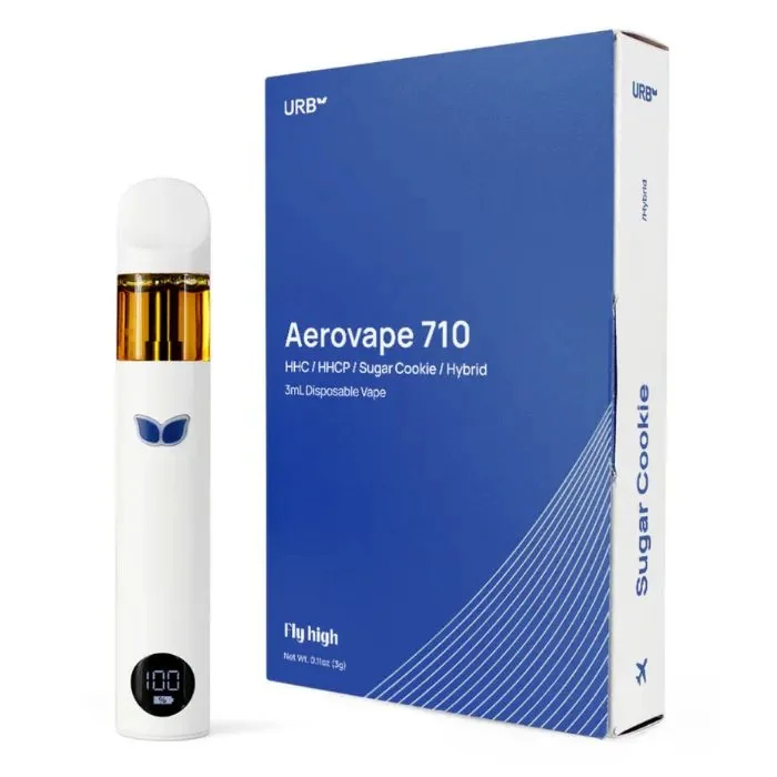 Urb Aerovape 710 Relax Disposable 3G – Crafted for ultimate relaxation, this premium device features Fresh Frozen Live Resin, 3 adjustable heat settings, pre-heat for smooth hits, and a digital battery screen with USB-C charging. Designed for reliability and performance, it delivers a potent and flavorful experience every time. Flavors: Clarity (Sativa) - Medium Strength cannabinoids THCV, THCB, Delta 10 and H4cbd Black Cherry Fizz: Black Cherry Fizz tingles the senses with hints of vanilla and the refreshing finish of a classic fizzy fountain drink that hits the sweet spot. Hawaiian Trainwreck: Ripe pineapple, bright citrus and pine, and a mist of sweet gas makes Hawaiian Trainwreck fans escape into a tropical haze. Strawberry Kush:The strawberry flavor is undeniable, transporting you to Strawberry Fields just like in the iconic Beatles tune. Euphoria (Hybrid) - High Strength cannabinoids HHC and HHCP Sherblato: Named for its delicious flavor, Sherblato brings on the fruity tastes with a gassy overtone that has a touch of nutty cookie to it. Strawberry Guava: Strawberry Guava packs a sweet and fruity strawberry flavor with hints of tropical guava upon exhale. Sugar Cookie: Getting baked has never been so sweet with Sugar Cookies. Relax (Indica) - High Strength cannabinoids THCP and THCH Blueberry Cookies: Notes of juicy blueberries fold into this sweet cookie creation. Dole Whip: Named for the beloved Hawaiian treat, Dole Whip packs a sweet, creamy tropical pineapple flavor with hints of sugary nuttiness. Gas Berry: Gas Berry is a very pungent and heavy-hitting indica that delivers a potent and delicious experience. Peach Mango Melons: Peach Mango Melons is a tantalizing tropical bud that will inspire good vibes only. Tigers Blood: Looking for a serious infusion of flavor while not being eaten by a Tiger? Tigers blood blends ripe strawberry, juicy watermelon, and coconut cream that evokes the ultimate summertime flavor anytime.