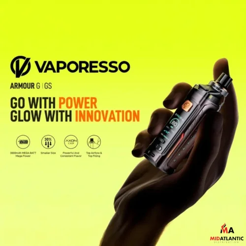 Meet the Vaporesso Armour GS 18650 Pod System Kit w/ 1x 5mL Refillable Armour G Series Pod — a latest pod designed for performance-minded vapers. Advanced features and user-friendly operation make this a standout choice in the pod category. Ideal for retail shelves and personal collections alike. Available at wholesale from Port City Wholesale.