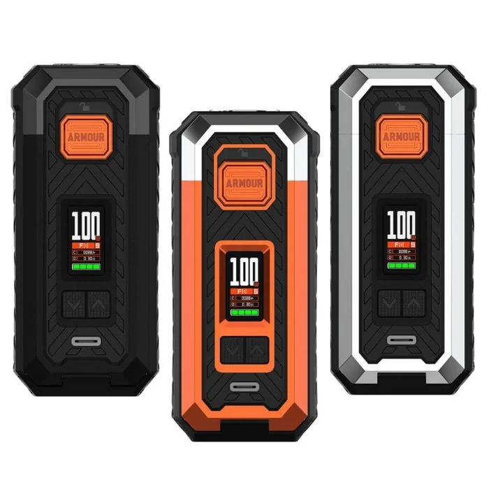 VAPORESSO ARMOUR S is the new single 21700 box kit for advanced DTL vapers. Crafted entirely from TPU material, ARMOUR envelops your tank and mod, ensuring comprehensive defense. And it's not just about protection, it's about smart engineering like the uni-lock that simplify your experience and elevate your vaping journey. With the innovative iTank 2 and GTi coils, it provides more accurate taste and 50% longer lifespan. Armour Max Mod : Dimensions: 41.9mm x 36mm x 4.8mm. Battery: Single 21700 or 18650. Wattage Output Range: 5W - 100W. Display: 0.96" TFT Screen. Armoured Protection. Uni-Lock Secure Your Power. COREX to Boost Flavor. AXON to Boost Power. One-Key Unlock. AXON CHIP. Fully Compatible With GTi Coils. INCLUDES : 1 x Vaporesso Armour S Mod. 1 x Tank Protective Cover (Pre-installed). 2 x O-Ring. 1 x 18650 Sleeve (Inside Mod). 1 x Type C Cable. 1 x User Manual & Warranty Card. 1 x Safety Manual & Reminder Card.