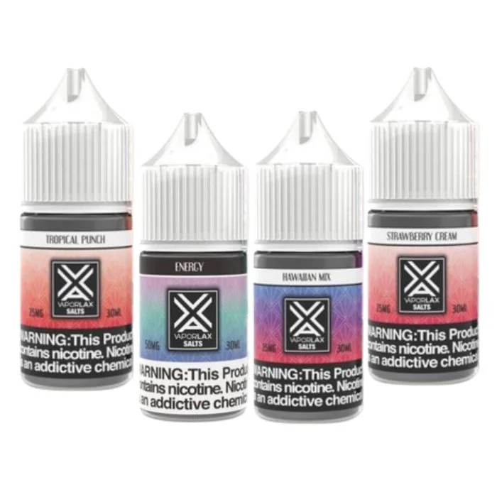 The Vaporlax Nicotine Salts deliver consistent, smooth hits in a 30ml bottle with your choice of 25MG or 50MG nicotine strength. Crafted for rich, bold flavor, these salts come in a variety of refreshing options to suit every palate. Perfect for vape shop customers seeking a satisfying and flavorful nicotine experience, Vaporlax Nicotine Salts ensure each draw is smooth and enjoyable. Ideal for both casual users and dedicated vapers, this product provides a reliable, high-quality option that maintains flavor integrity and nicotine satisfaction throughout every session. Vaporlax Nicotine Salts Features: Bottle Size: 30ml Nicotine Strength: 25MG or 50MG Smooth Hits: Crafted to deliver a satisfying and consistent vaping experience Flavor Variety: Bold and refreshing flavors for every preference Vaporlax Nicotine Salts Flavors: Banana Ice – A cool, creamy blend of ripe bananas and icy menthol. Blue Razz – A sweet and tangy blue raspberry explosion. Blueberry Ice – Juicy blueberries with a refreshing menthol twist. Cool Mint – Crisp, clean mint for a refreshing hit. Energy – A sweet and sour mix that mimics the taste of a popular energy drink. Hawaiian Mix – Tropical fruits come together for a smooth, exotic vape. Icy Fruits – A frosty blend of mixed fruits and menthol. Lush Ice – Watermelon and menthol create a cool, fruity sensation. Peach Ice – Sweet, juicy peaches with an icy finish. Rainbow Mix – A colorful array of fruity flavors in every puff. Strawberry Banana – A creamy blend of sweet strawberries and ripe bananas. Strawberry Cream – Luscious strawberries swirled with smooth cream. Tropical Punch – A vibrant mix of tropical fruit flavors. Vaporlax Nicotine Salts Wholesale: Vaporlax Nicotine Salts Wholesale gives vape retailers a premium, high-demand product to stock in volume. With bold flavors and multiple nicotine strengths, these salts support repeat sales and customer s