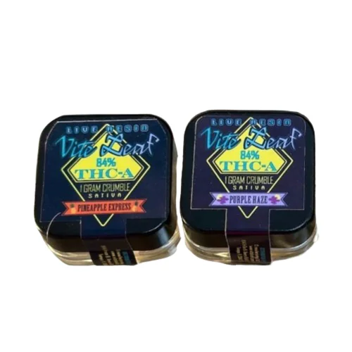 Vite Leaf THC-A Crumble 1G offers a potent and flavorful experience with 84% THC-A, made from the highest-quality rosin. Available in multiple strains, this crumble is perfect for daily use, packaged in a childproof glass container for both safety and convenience.