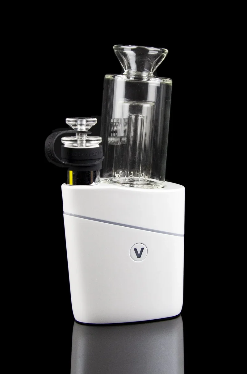 Now available in the new and improved Version 2! Temperature setting upgraded from 3 to 4 options. Faster heating time and more precise temperature control system. A smarter and more reliable power management system has been added which supports a longer battery life ( supports more than 50 cycles). A protection system has been added so the device will start the auto-shutoff protection program in case of a short-circuit or over-heat. Inserts increased to a higher capacity for bigger dabs. Do you think you have a guardian angel? Someone watching over you, catching you just before you stumble, and cheering you on when you succeed? The Halo V2 Smart E-Rig can be yours. This battery powered desktop rig assembles a battalion of technology representing the very front lines of current innovation and glosses it in a gleaming package of design prowess. One of the biggest disadvantages of regular dabbing is the inability to fine-tune a specific temperature beyond simply guessing. This is where the Halo can truly be your watchful protector. The new V2 now comes hardwired with four temperature settings ( 480F, 600F, 680F and 750F ), calibrated so precisely that a fleet of angels could dance on the tip of its needle. Its smart touch power sensor operation allows your fingertips to glide aloft the surface of the controls like a figure skater nimbly performing their swan song in the Siberian tundra as daybreak softly whimpers on the winter solstice. This makes operating the rig as effortless and second-nature as operating the touch screen of a smartphone. It also frees the design from the constrains of buttons— of which it takes full advantage. They say that every time you hit a dab, an angel gets its wings. The Halo has assembled a battalion of leading innovations in e-rig technology of the current moment to form its front line. It features a nichrome coil — which behaves similarly to the oft-encountered kanthal coil, but heats faster and has more resistance. The interchangeab...