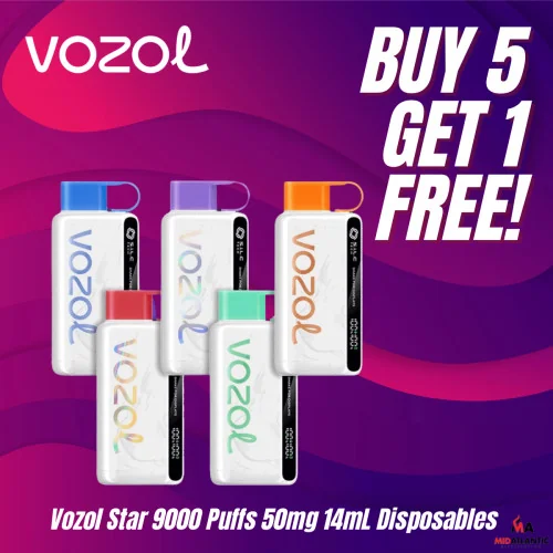 Vozol Star 9000 Puffs 50mg 14mL Disposables w/ S.i.L.C Tech *Display of 5* Introducing the STAR 9000, the ultimate vape device designed to elevate your vaping experience. With its cutting-edge features and innovative technology, it's the perfect choice...