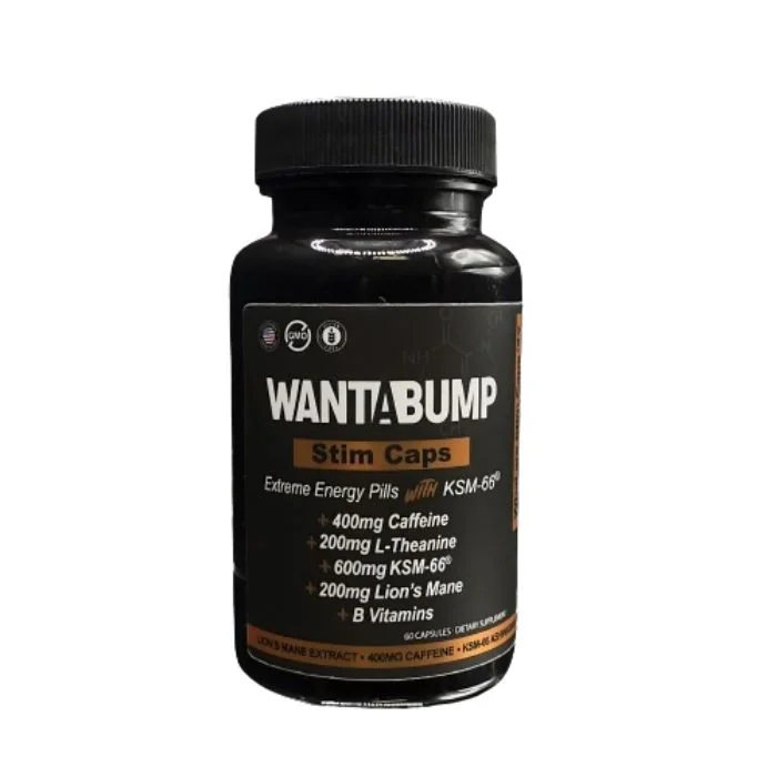 Experience a powerful energy boost with Want A Bump Extreme Energy Pills. These pills are designed to enhance focus, improve mood, and increase endurance. With 400mg of caffeine per serving, they provide a significant energy surge to keep you alert and active. Additionally, the formula includes 600mg of ashwagandha, a natural herb known for its stress-relieving properties and cognitive support. Key Benefits: High Caffeine Content: 400mg of caffeine per serving for a potent energy boost. Ashwagandha: 600mg to help reduce stress and support cognitive function. Vitamins B3, B6, B12: Essential for energy production and nervous system health. Lion’s Mane Extract: 200mg from the entire fruiting body and mycelium, offering enzymes, antioxidants, fibers, and cellular nutrients. Crafted with high-quality ingredients, Want A Bump Extreme Energy Pills are proudly manufactured in the USA in a GMP-certified facility, ensuring top-notch quality and safety. Elevate your energy levels, focus, and mood with this exceptional supplement.