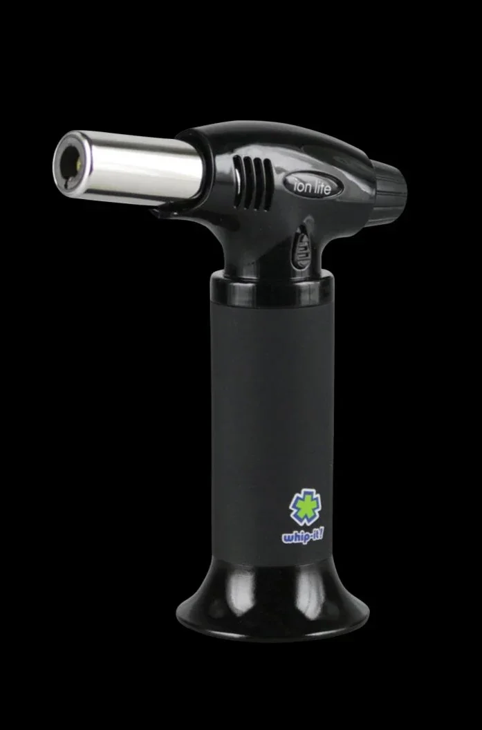 You'll whip it real good with the whip-it! Brand Ion Lite Torch Lighter . At 6" inches tall, it has a thumb trigger, adjustable flame, safety switch, rubberized handle coating, and flat-bottomed stand. The classic ergonomic design maximizes its efficiency and convenience. It's an effective butane torch that's easy to use, well designed, and reliable for sesh after sesh. Note: Butane sold separately.