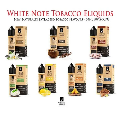 White Note 60mL E-Liquid by Black Note Labs VANILLA TOBACCO Toasted Virginia tobacco combined with sweet vanilla beans from the vanilla land of Madagascar. COFFEE & CARAMEL TOBACCO American tobacco blend layered with hints of...