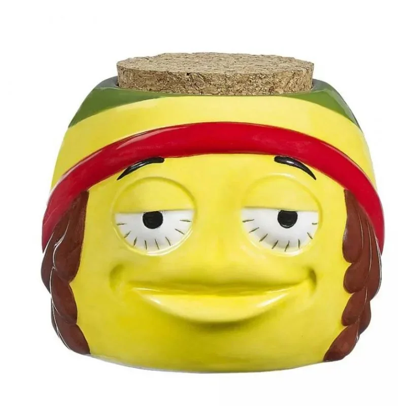 CERAMIC RASTA EMOJI STACH JAR (88179) Add a playful vibe to your storage with the Ceramic Rasta Emoji Stash Jar . Designed with a fun and vibrant Rasta-themed emoji , this jar is perfect for keeping your essentials safe and secure. Crafted from durable ceramic, it ensures freshness and protection while making a bold style statement. Features: Rasta Emoji Design: Fun and colorful for a unique touch. Durable Ceramic Construction: Ensures long-lasting use and freshness. Compact Size: Perfect for di