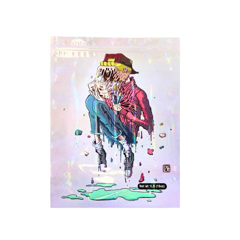 HOLOGRAPHIC MYLAR 1 LB BAGS 25CT MASK OFF PINOCCHIO DESIGN Add unique character appeal to your bulk packaging with the Holographic Mylar 1lb Bags – Mask Off Pinocchio Design, 25ct Pack . Featuring a shiny holographic finish with a creative Mask Off Pinocchio theme , these oversized bags combine novelty artwork with heavy-duty storage performance . Each bag is designed to hold 1 pound (16 oz) , making it perfect for bulk flower, edibles, or wholesale cannabis products . Built from durable, smell-
