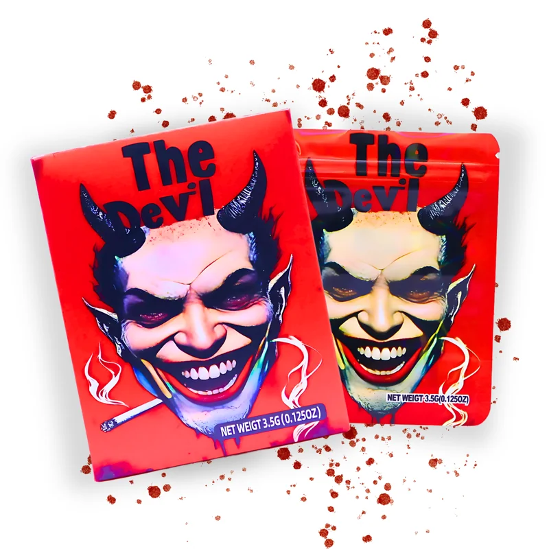 HOLOGRAPHIC MYLAR 3.5G BAGS WITH BOXES 50CT DEVIL DESIGN Bring fiery edge to your packaging lineup with the Holographic Mylar 3.5g Bags with Boxes – Devil Design, 50ct Pack . Featuring a striking holographic finish with a bold devil-inspired theme , these premium-quality bags come with matching display boxes , delivering both eye-catching retail presentation and reliable storage performance . Each bag is designed for 3.5 grams (⅛ oz) , making it ideal for packaging flower, edibles, or specialty