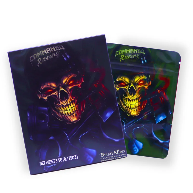 HOLOGRAPHIC MYLAR 3.5G BAGS WITH BOXES 50CT SKULL DESIGN Add dark edge and bold appeal to your packaging with the Holographic Mylar 3.5g Bags with Boxes – Skull Design, 50ct Pack . These premium-quality bags feature a striking holographic finish with a skull-inspired theme and come with matching display boxes , blending novelty artwork with high-performance storage functionality . Each bag is sized for 3.5 grams (⅛ oz) , perfect for flower, edibles, or specialty goods. Made with smell-proof, res