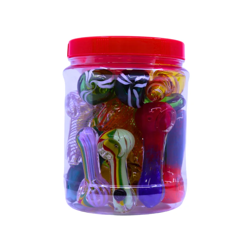 Shop/Products/PREMIUM 2.5" SPOON GLASS MIXED HANDPIPE JAR OF 20 (JAR-55)