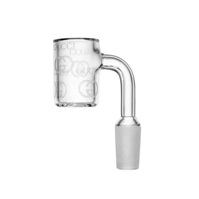 PREMIUM MALE 90 DEGREE MALE BANGER 14MM GUCCI ENGRAVING DESIGN JAR OF 12 (JAR-119) The Premium 90-Degree Male Banger 14mm with Gucci Engraving Design brings a luxury aesthetic to your dabbing setup. Featuring a stylish engraved pattern inspired by designer branding, this quartz banger is both functional and fashion-forward. Crafted for compatibility with 14mm female rigs, it offers excellent heat retention, clean vaporization, and a smooth airflow path. The engraved detailing adds a touch of sop