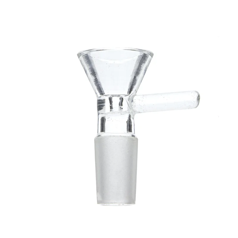 PREMIUM STANDARD 14M MALE GLASS BOWL WITH HANDLE JAR OF 18 (JAR-125) The Premium Standard 14M Male Glass Bowl with Handle is a must-have accessory for any water pipe setup. Designed to fit 14mm female joints, this bowl features a classic rounded shape and a convenient side handle for safe and easy removal. Made from durable, heat-resistant glass, each bowl is crafted for smooth airflow and optimal herb packing. The handle adds both functionality and style, making it a popular choice for daily us