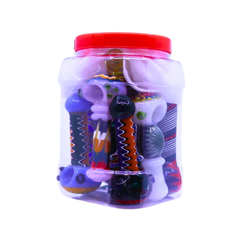 REVERSABLE PREMIUM WIGWAG SPOON 4" HANDPIPE JAR OF 10 (JAR-107) The Premium WigWag Spoon 4" Handpipe showcases intricate craftsmanship and bold artistic design. Each piece features vibrant wigwag swirl patterns, creating a hypnotic visual effect that sets it apart. At 4 inches long, these handpipes provide a comfortable grip and smooth draw, making them ideal for both casual and experienced users. Hand-blown from thick, durable glass, each pipe is a one-of-a-kind work of art. The 10-piece jar (J