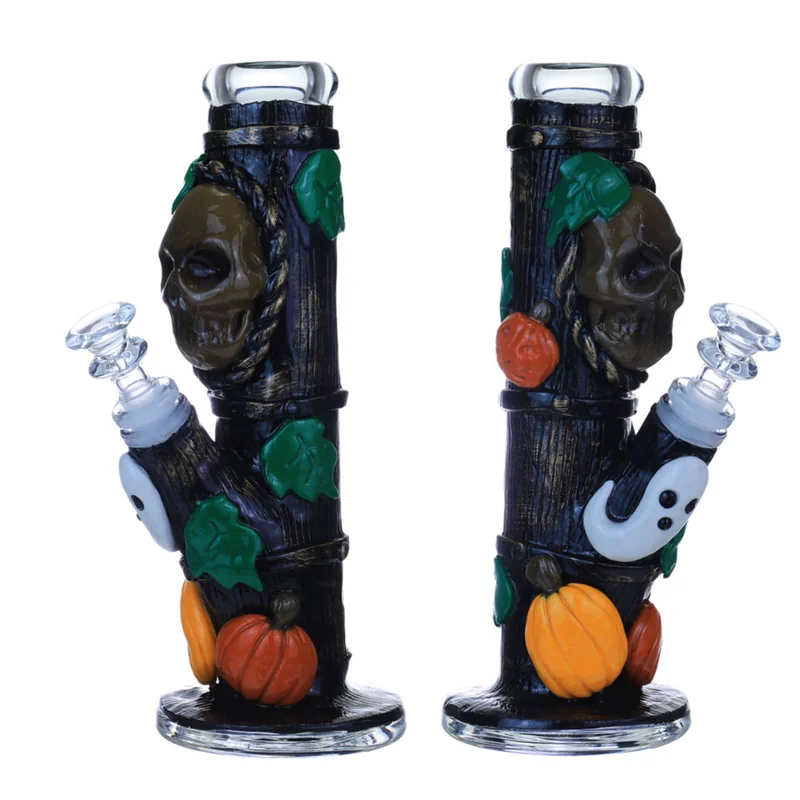SKULL WITH GHOST AND PUMPKINS HEAVY STRAIGHT DESIGN 9" WATERPIPE (WP-562) The Skull with Ghost and Pumpkins Heavy Straight Design 9" Waterpipe (WP-562) is a bold, themed glass piece that combines spooky artistry with everyday functionality. Standing 9 inches tall , this waterpipe is crafted from thick borosilicate glass and showcases a detailed skull, ghost, and pumpkin design , making it both a collectible and a reliable smoking tool. With its straight-tube construction, sturdy base, and precis