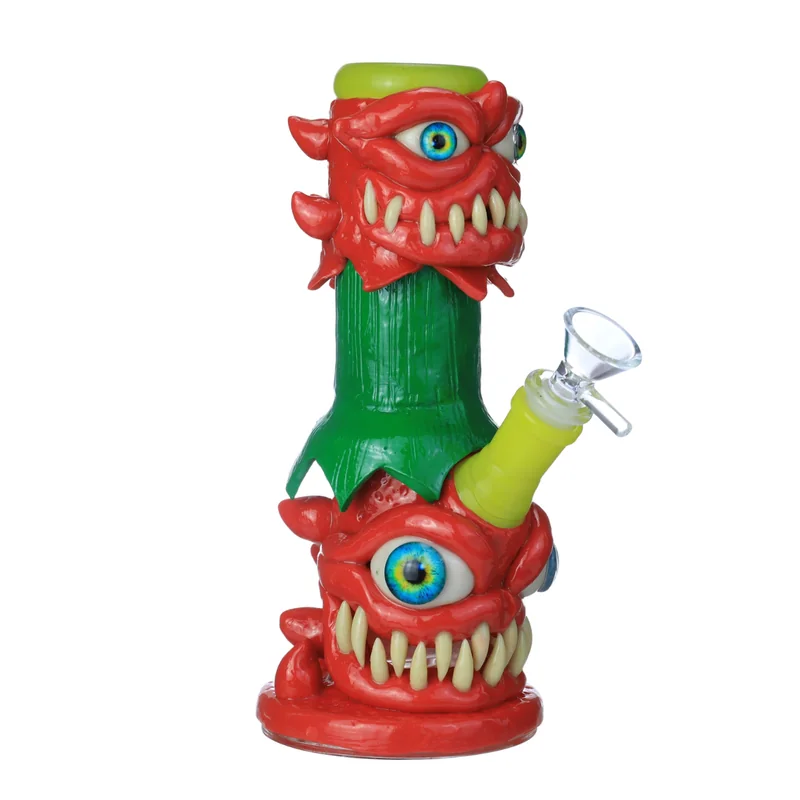 THE WATCHFUL BEAST HEAVY DESIGN 9" WATERPIPE GLOW IN THE DARK (WP-588) The Watchful Beast Heavy Design 9" Glow-in-the-Dark Waterpipe (WP-588) is a striking fusion of art and function , designed for smokers who want something bold and unique. Standing 9 inches tall and made from thick, durable borosilicate glass , this waterpipe showcases an intricate “Watchful Beast” sculpted design that comes to life — literally — with its glow-in-the-dark detailing . The WP-588 delivers smooth, filtered hits t