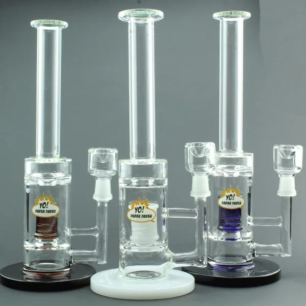 Available in 4 different styles – Shower head perc with removable mouthpeice Straight tube with 4 slit perc and splash guard ( white, blue, and red) Bent neck tube with inline perc and splash guard – Out of stock Bent neck tube with inline perc