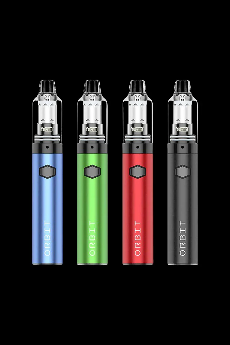 The Yocan Orbit Concentrate Vaporizer features out-of-this-world technology that makes getting blasted into oblivion fun and easy. This concentrate and wax vaporizer includes terp pearls that rotate with the airflow in the concentrate chamber to evenly distribute heat and to fully vaporize all your materials. The Orbit's coil-less quartz cup chamber allows the terp beads to move freely and heat to their full potential. This portable Yocan vape is powered by a 1800mAh variable voltage battery with settings ranging from 3.4 volts to 4.0 volts.The brilliant minds at Yocan have determined that this heating range is the most effective and efficient, and especially in combo with the quartz heating element and quartz terp pearls. The Orbit has a 10-second heat up mode which is ideal when you want to take a few quick rips while you're out and about. The 5.1-inch long Yocan Orbit Looks sharp with its stainless steel body and the unit charges quickly and conveniently via a USB-C charge connection. It's a lightweight, portable vape pen that comes in several amazing colors. Take your concentrate game on the road and do it with style with the impressive Orbit that's made for concentrate connoisseurs .