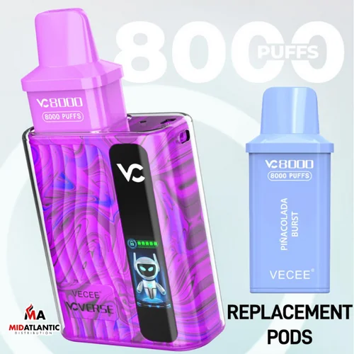 The Yocan VECEE 8000 Puffs 50mg 18mL Disposable Mesh Pod Replacements *Display of 10* delivers a smooth, flavorful vaping experience in a convenient disposable format. Comes in a quantity of display of 10. A top-moving item for smoke shops and convenience stores. Available at wholesale pricing from Port City Wholesale.