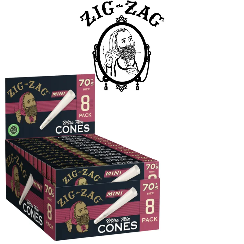 Experience a smooth and refined smoking experience with ZIG ZAG 70's ULTRA THIN MINI CONES 18CT DISPLAY OF 8. These ultra-thin mini cones are designed for those who appreciate a slow, even burn. Perfect for both casual and seasoned smokers, this display includes 8 packs of 18 mini cones each, ensuring you always have a convenient and high-quality option on hand. Features: Ultra-Thin: Provides a smooth and slow burn for an enhanced smoking experience. Mini Cones: Ideal size for personal use or sh
