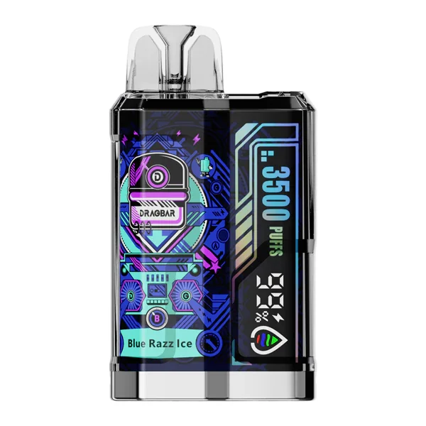 DRAGBAR B3500 VAPE 10-Pack Flavor : The always popular blue raspberry confection flavor, tempered with coolness, bursts forth in every puff of the Blue Razz Ice Dragbar B3500 by Zovoo. E-liquid contents : 8ml Nicotine Level : 50mg Puffs per Device : +3500 Battery : 500mAh (Rechargeable via USB-C) Master Case Qty : 200 Made with Mesh Coil Browse more disposable vape flavors