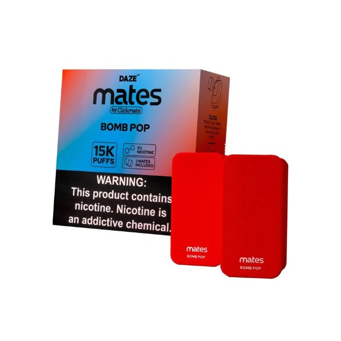 Elevate your vaping experience with Daze Mates Pre-filled Pods. Designed for the Clickmate vape, these disposable pods offer an endless voyage of flavors. Each pack includes two pods, each containing 9mL of 5% salt nicotine e-juice, providing up to 7,500 puffs per Mate. Simply click in a new pod to enjoy a fresh, delicious flavor. Key Features: 5% nicotine by weight (50mg/mL) 18.0 mL of e-liquid (9.0mL per Mate) Up to 15,000 puffs (7,500 puffs per Mate) Disposable pods Made with salt nic e-juice Package Contents: 2 X Daze Mates Pods Flavors: Blue Razz: Sweet and tart blue raspberry Bomb Pop: Cherry, lime, and blue raspberry Cherry Limeade: Cherry and Lime Clear: Pure, flavorless vape Georgia Peach: Juicy Georgia peaches Grapeberry Splash: Grapes and mixed berries Hawaiian Gummi: Tropical candy blend Icy Bites: Minty explosion with a hint of sweetness Island Cooler: Pineapple, coconut, and citrus Island Tiki Punch: Exotic fruits and punchy flavors Lush Ice: Watermelon with icy menthol Lychee Dragon Jelly: Lychee and dragon fruit Mango Madness: Sweet, ripe mangoes Mango Sunset: Mango with subtle citrus Matcha Latte: Matcha Rainbow Berries: Medley of berry flavors Red GrappleMelon: Red apple, grapes, and watermelon Pink Lemonade: Cherry and Lemon Sakura Grape: Sakura blossoms and grapes Sour Apple Belt: Tangy sour green apple Spearmint Blast: Crisp, clean spearmint Strawberry Fluff: Strawberry marshmallow Strawberry Watermelon: Strawberries and watermelon Discover the vibrant world of Daze Mates and transform your vape sessions.