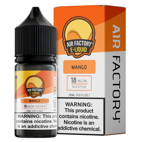 NICOTINE SALTS | Individual Bottle Flavor : Mango by Air Factory provides tropical notes of sweet and succulent mangoes, dripping with delectable nectar. E-liquid contents : 30mL Nicotine Strengths : 18mg and 36mg Blended for use with Pod Systems Browse more E-Liquid Brands Here