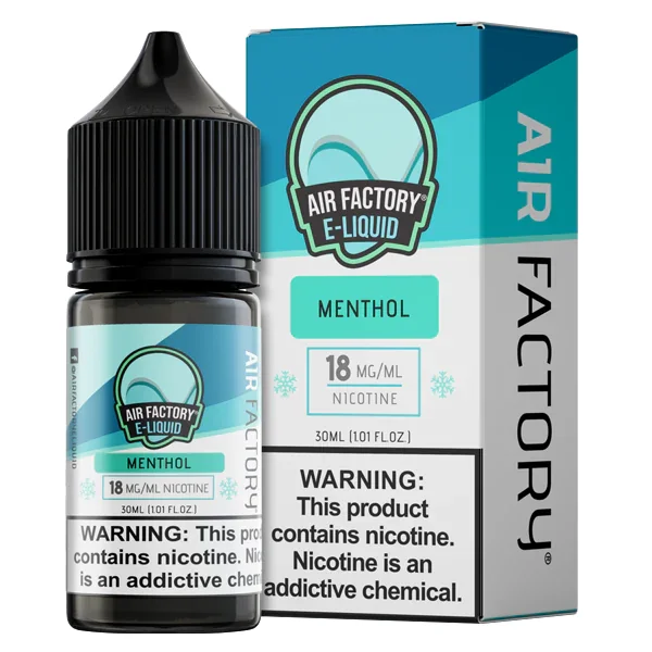 NICOTINE SALTS | Individual Bottle Flavor : Menthol by Air Factory is a chilly rendition of pure menthol, revitalizing and rejuvenating the senses with the refreshing flavor. E-liquid contents : 30mL Nicotine Strengths : 18mg and 36mg Blended for use with Pod Systems Browse more E-Liquid Brands Here