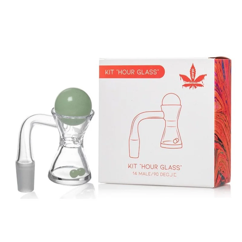 ALEAF HOUR GLASS KIT 90 DEGREE 14MM MALE BANGER (ALD1019) Upgrade your concentrate experience with the Aleaf Hour Glass Kit 90 Degree 14mm Male Banger (ALD1019) . Featuring a unique hourglass quartz design , this premium banger is built to deliver smooth vapor, excellent airflow, and superior heat retention . With its 90° angled joint and 14mm male fitting , the Aleaf Hour Glass Banger is compatible with most rigs and waterpipes. The hourglass chamber design enhances heat distribution and vapori