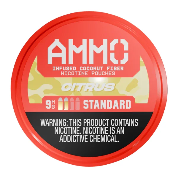 5-PACK OF POUCH CANS Flavor : Wholesale Ammo nicotine pouches at Mi-Pod are available in the popular citrus flavor. Citrus Ammo pouches use coconut fiber technology to provide a satisfying experience. Nicotine Level : 9mg (Standard), 12mg (Strong) or 15mg (Magnum) per pouch Can QTY: 15 nicotine pouches per can Retail Case Size : Sold in 5-Pack of Cans Patented Coconut-Fiber Pouch Technology Extended, long-lasting nicotine release Assembled in the USA Vapor Free Nicotine Alternative Browse all Wholesale Nicotine Pouches