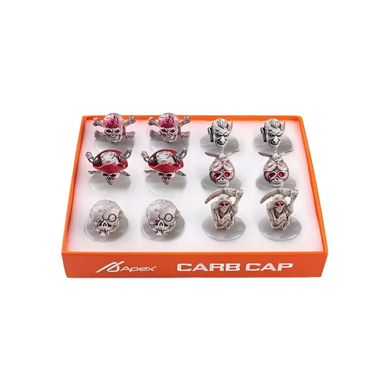 APEX PREMIUM GLASS CARB CAP ASSORTED DESIGNS DISPLAY OF 12 (CCP200) Enhance your dabbing setup with the APEX Premium Glass Carb Caps , meticulously crafted for precision and performance. Featuring a variety of assorted unique designs , these carb caps optimize airflow control and heat retention, ensuring efficient and smooth vaporization. Made from high-quality glass , they are durable and compatible with most quartz bangers and dab rigs. Packaged in a display of 12 , they are perfect for retail