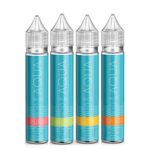 AQUA SALT | 30ML FLAVORS : Azure: A flavor explosion of mixed berries and notes of fruit. Blizzard: Classic strawberry kiwi finished with a menthol exhale. Breeze: Genuine mint flavor, chilly and fresh with each puff...