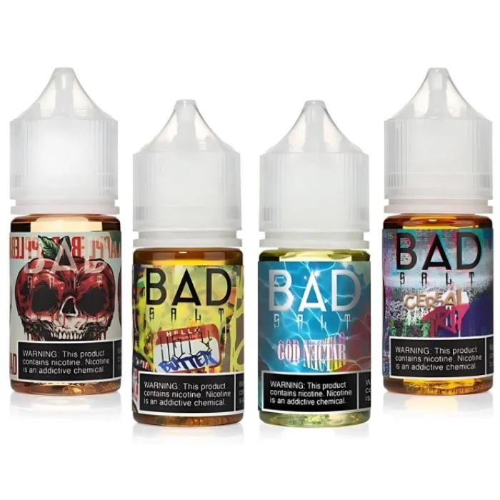Bad Drip Nicotine Salts are available in 30ml bottles, offering two nicotine strengths: 25MG and 45MG. Crafted for smooth vaping, these nicotine salts deliver bold flavors ideal for vape enthusiasts and wholesale buyers. Discover a variety of unique blends, each with its own distinct taste. Flavors (Alphabetical): Bad Apple – A crisp, tangy apple flavor with a sweet twist. Bad Blood – A blend of blueberries, pomegranate, and vanilla for a fruity, smooth hit. Cereal Trip – A sugary cereal with a creamy glaze for breakfast lovers. Don't Care Bear – Juicy gummy bears with a mix of peach and pear flavors. Drooly – A grape and mixed berry fusion for a bold and sweet vape. Farley's Gnarly – Bubblegum and strawberry kiwi combine for a candy-like experience. God Nectar – A tropical mix of passionfruit, guava, orange, and mango. Laffy – Chewy blueberry taffy with a hint of grape. Pennywise – A watermelon bubblegum explosion. Pennywise Iced Out – Watermelon bubblegum with a refreshing menthol finish. Sweet Tooth – Cotton candy spun with a sugary berry flavor. Ugly Butter – A rich banana pudding mixed with cinnamon sugar. These premium salts cater to vape users seeking intense flavor and satisfaction.