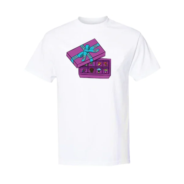 Stay ahead of the 'shroom boom' by getting your hands on our all-new 'mushroom box' Zooted t-shirt. While the ribbon on the graphic displays the Zooted logo, the box's contents display a (sh)room full of surprise! Unisex, round neck, and white-colored, this t-shirt is the ultimate, simple, classy, casual wear. Available in sizes from S to 2 XL, the Zooted shroom boom t-shirt is a must-have addition to your collection of weed-themed clothing. Extremely comfortable, stylish, funky, and trendy – the mushroom box Zooted t-shirt is a favorite among shroom lovers. Wear this at events, get-togethers, head shop strolls, coffee dates, weekend chill sessions, or just while lounging around and watch how you turn heads. Material - 100% combed ring-spun cotton Sizes – S to XXL - Unisex Sleeve Length – Half Sleeves Colors Available – White Machine washable