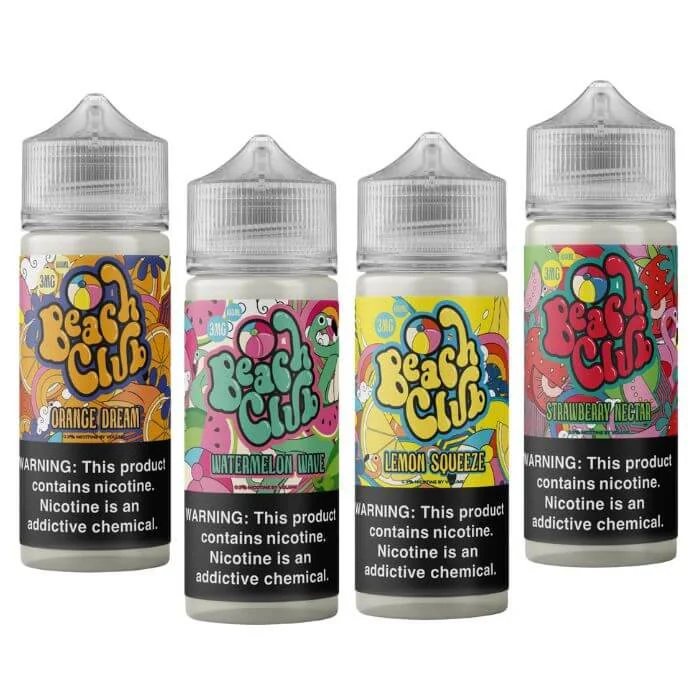 Experience the premium quality of Beach Club E-Juice, conveniently packaged in a chubby 100ml bottle for easy refilling. Available in two nicotine strengths, 3mg and 6mg, this vape juice is designed to satisfy your cravings while delivering rich, flavorful clouds. Flavors Available: Kiwi Guava: Enjoy the exotic blend of juicy kiwi and sweet guava for a tropical escape. Lemon Squeeze: Refresh your senses with the zesty and tangy flavor of freshly squeezed lemons. Orange Dream: Indulge in the creamy and citrusy delight of an orange creamsicle. Strawberry Nectar: Savor the sweet and luscious taste of ripe strawberries. Watermelon Wave: Ride the wave of refreshing watermelon for a cool, satisfying vape. Enhance your vaping experience with Beach Club E-Juice, crafted for vape stores and smoke shops looking to offer premium products to their customers.