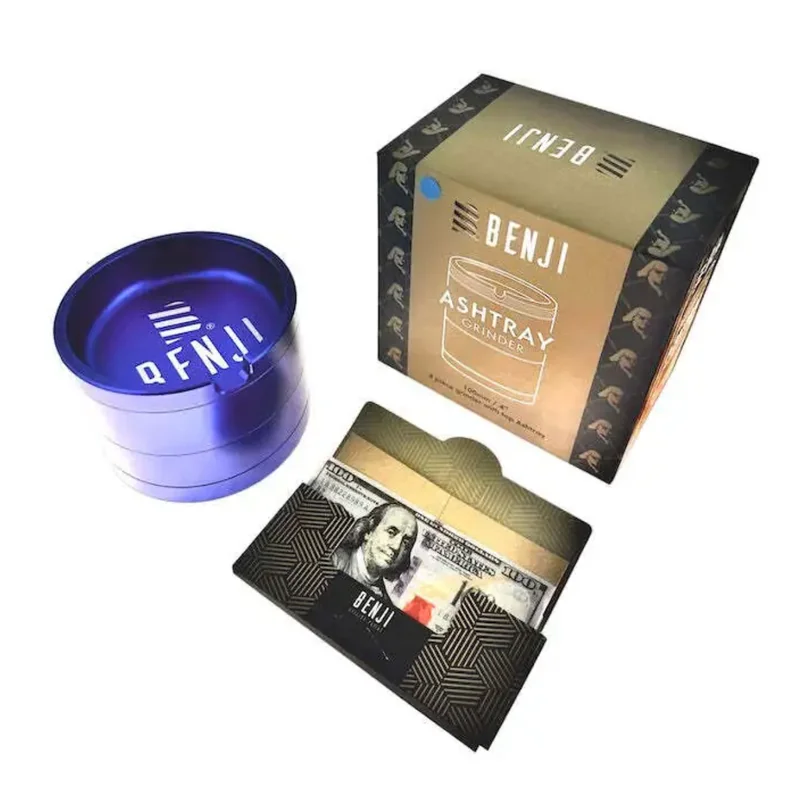 BENJI ASHTRAY 4 PIECE XL GRINDER 4" WITH TOP ASHTRAY AND ROLLING PAPERS The Benji Ashtray 4-Piece Grinder is a multi-functional smoking accessory designed for convenience and efficiency. This 4-inch premium grinder features sharp grinding teeth for a smooth and consistent grind, a built-in ashtray on top , and a compartment for rolling papers , making it an all-in-one solution for smokers. Crafted from high-quality materials , this grinder ensures durability and long-lasting performance wh
