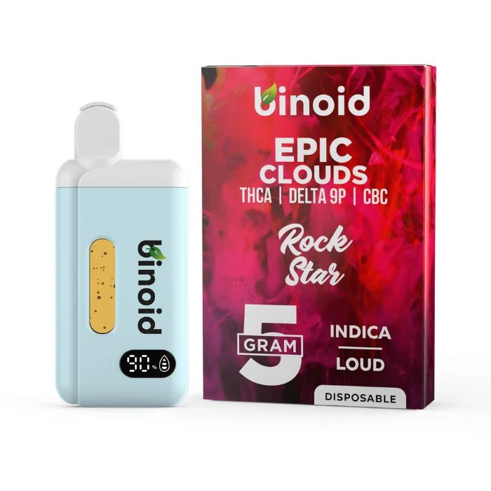 This product cannot be shipped to CA. Experience the newest innovation in disposable vapes with Binoid’s Epic Clouds 5 Gram Disposable Vape. This cutting-edge 5-gram device combines premium THCA, HHC-B, and CBC distillate in one formula, or THCA, Delta 9P, and CBC in another, delivering two exceptional blends. Enhanced with live resin terpenes, these vapes provide a superior, powerful experience. Our extensive R&D has revealed that CBC significantly enhances the strength and longevity of the effects, making it the secret ingredient in this potent formula. Binoid’s 5 Gram Disposables offer impressive clouds and great value per gram, making them a favorite among enthusiasts. The Binoid Epic Cloud Series is rapidly gaining popularity with these incredible live terpene flavors. Users can expect an extraordinary buzz and an exceptional vaping experience. Strains: Code Red (Hybrid): THCA, HHC-B, and CBC blend for a balanced and uplifting experience. Cosmic Berry (Indica): THCA, HHC-B, and CBC blend for a relaxing and soothing effect. Incredible Hulk (Sativa): THCA, HHC-B, and CBC blend for an energizing and creative boost. Sour Tropicana (Sativa): THCA, Delta 9P, and CBC blend for a refreshing and invigorating experience. Discover the future of vaping with Binoid’s Epic Clouds 5 Gram Disposable Vape, and enjoy powerful clouds and unparalleled flavor.