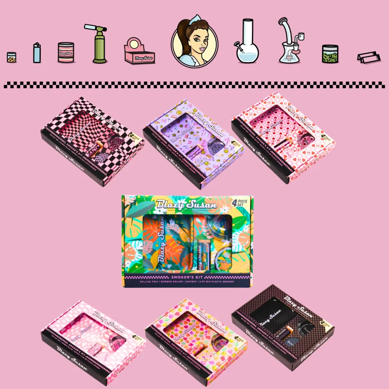 BLAZY SUSAN SMOKER’S KIT ALL IN ONE ROLLING & SMOKING ESSENTIALS SET The Blazy Smoker’s Kit is a stylish, portable solution for smokers who want everything in one convenient box. Designed for versatility and functionality, this premium kit includes all the tools needed to grind, roll, and enjoy a smooth session—whether you’re at home, traveling, or gifting a fellow enthusiast. Each component is crafted for durability and ease of use, making it a must-have for smoke shops, gift retailers, and